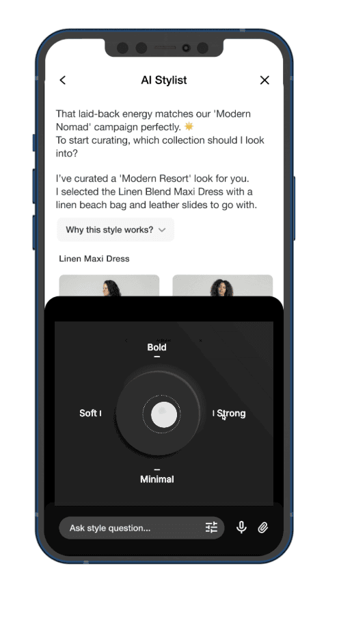 This led to a question: what if the AI Stylist could act as that “other,” helping users explore their style rather than simply providing answers?